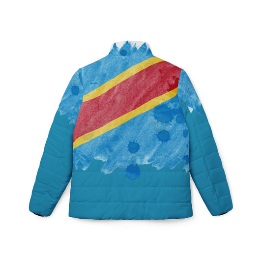 DR Congo Flag Watercolor Puffer Jacket