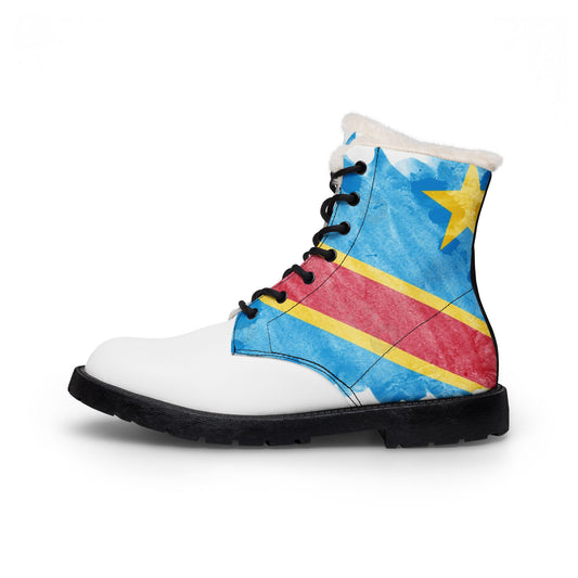 Fur-Lined Leather Boots — Congo Flag Winter Ankle Boots